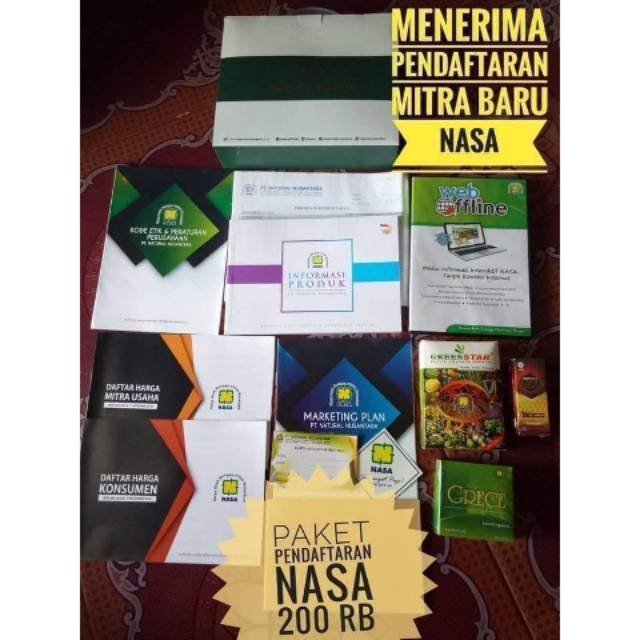 Paket pendaftaran member nasa / paket pendaftaran distributor nasa / staterkit nasa / kit b nasa. Paket member bisnis nasa distributor nasa merupakan mitra bisnis pt. Untuk memulai bisnis nasa tidak memerlukan modal banyak, karna untuk memulainya anda hanya perlu modal awal 200.000 untuk membayar paket starkit nasa. Pendaftaran member nasa.distributor nasa merupakan mitra bisnis pt nasa dalam pemasaran produk nasa ke konsumen. Buku kesaksian opini sukses bisnis & .